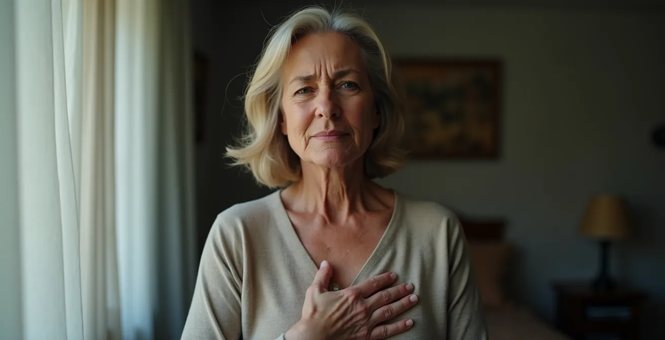 Cette phrase doit devenir votre mantra. Oubliez l’image de l’homme qui s’effondre en se tenant la poitrine. Pour vous, l’infarctus se présente le plus souvent sous un masque trompeur. La triade à surveiller est : un essoufflement inhabituel à l’effort ou même au repos, une fatigue soudaine et écrasante qui ne ressemble à rien de ce que vous connaissez, et des douleurs atypiques. Ces douleurs peuvent se loger dans le dos (entre les omoplates), à l’estomac (simulant une indigestion), ou dans la mâchoire.